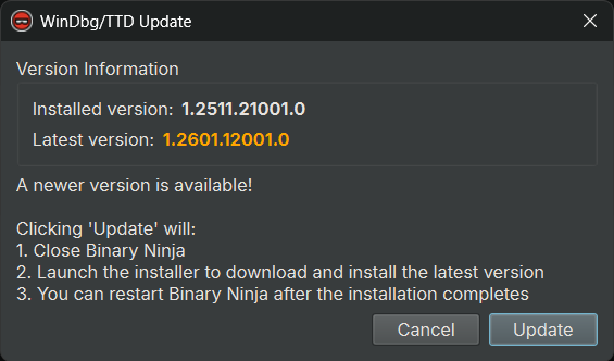 If you already have WinDbg/TTD installed and want to check for updates:
